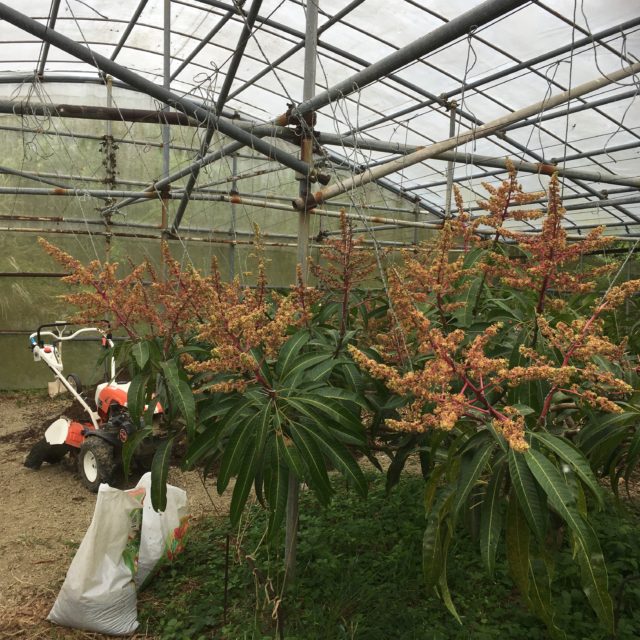 第1ハウスのアーウィンマンゴーは、開花時期も早く、もうそろそろ満開期を迎えそうですが、その他のハウスはバラツキがあり、今の時点で枝先が割れ始めている枝も多くあります。