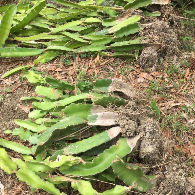 さて、最後の写真はドラゴンフルーツの苗です。今週中には定植する予定で、パパイヤと同じく少しずつですが、栽培面積を増やしていきますよ。(≧▽≦)