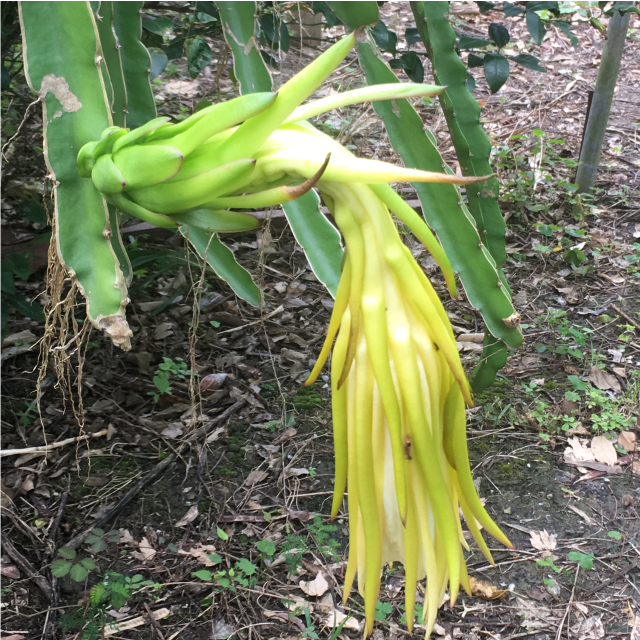 遺伝といえば先日、沖縄豊見城 朝雲ファーム ドラゴンフルーツ畑でのこと。夫が ( ゚Д゚)! ⇒ (*’▽’) になってとってくれた写真(2枚目)がこちらです。1枚目の写真はドラゴンフルーツの花の写真です。