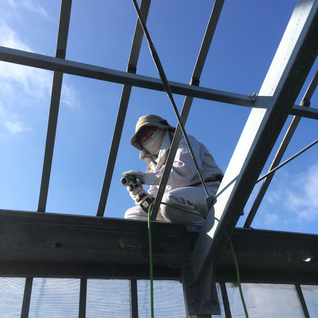 ハウスの屋根の上で行う作業は危険が伴うので、できるだけ集中力と体力がMAXな状態で行いたいため、午前中の1~2時間を目安にちょびちょびと行っていますよ。